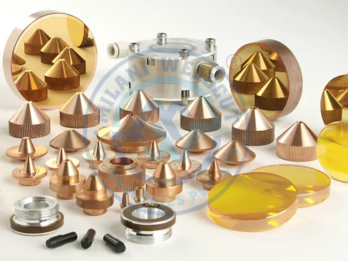 LASER CUTTING is a technology in which a laser is usLed to vaporise materials and provide a cutting edge. When cutting mild steel, the heat of the laser beam is enough to start a typical “oxy-fuel” burning process, and the laser cutting gas will be pure oxygen, just like an oxy-fuel torch. When cutting stainless steel or aluminum, the laser beam simply melts the material, and high pressure nitrogen is used to blow the molten metal out of the kerf. We provide different kind of Heads, Spare Parts & Consumable Parts when it comes to LASER CUTTING.